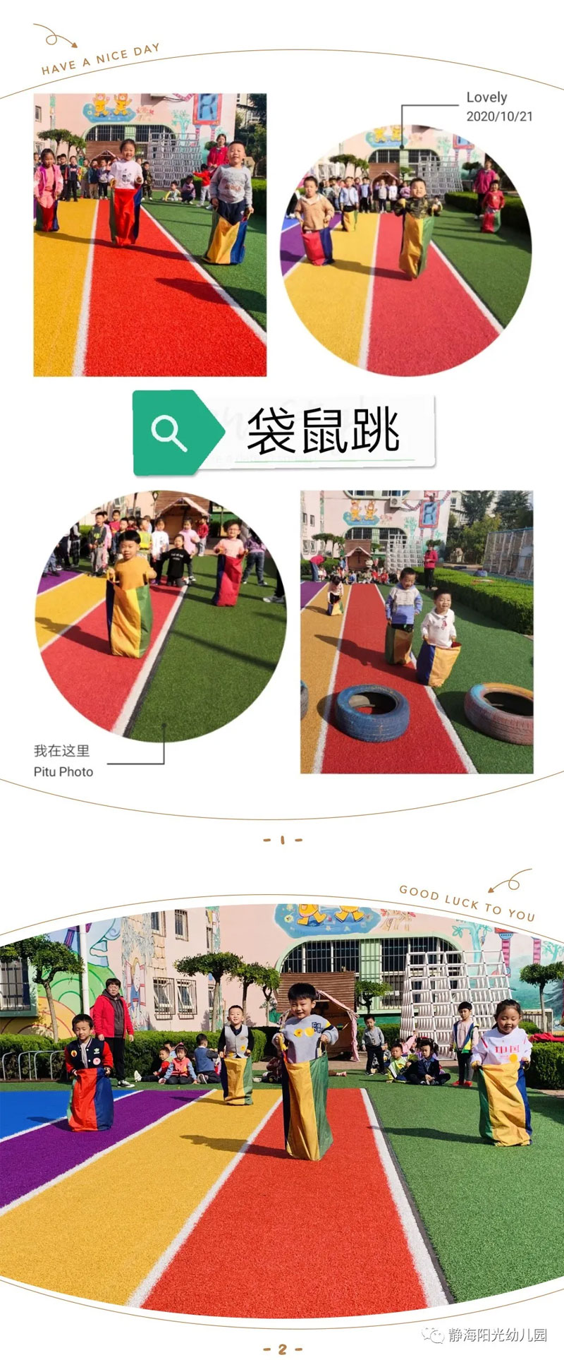 ÇﶬµÄůÈÕ£¬Ó³È÷×ÅÎÒÃǵÄЦÈÝ£»»¶¿ìµÄÀÖÇú£¬¼¤µ´×ÅÎÒÃǵÄÐÄÁ顣ΪÒý·¢Ó×¶ùÆð¾¢¼ÓÈëÔ˶¯µÄÐËȤ£¬Ä¥Á¶ÒâÖ¾Á¦£¬×÷ÓýÏàÖúÒâʶ£¬ÈÃÓ×¶ùÔÚÔ˶¯ÖÐÌåÑéÀֳɺÍϲÔ᣾²º£Ñô¹âÓ×¶ùÔ°ÓÚ10ÔÂ19-21ÈÕÒÔ¼¶²¿Îªµ¥Î»£¬¾ÙÐÐÁË2020ÄêÇï¼¾Ô˶¯»á¡£